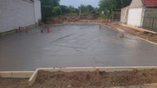 - Folien (PVC- oder PE-Folien) müssen als Dämmmaterial eingearbeitet werden. Abschließend wird Flüssigbeton auf die Unterkonstruktion und die Frostschürze gegossen.